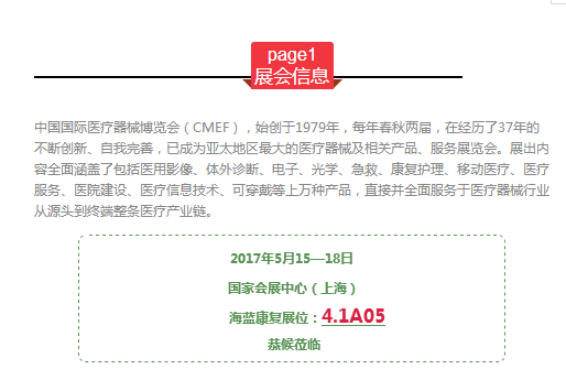 青島海藍康復(fù)誠摯邀您參加第77屆中國國際醫(yī)療器械(春季)博覽會,中國國際醫(yī)療器械博覽會(CMEF),始創(chuàng)于1979年,每年春秋兩屆,在經(jīng)歷了37年的不斷創(chuàng)新、自我完善,已成為亞太地區(qū)最大的醫(yī)療器械及相關(guān)產(chǎn)品、服務(wù)展覽會。展出內(nèi)容全面涵蓋了包括醫(yī)用影像、體外診斷、電子、光學(xué)、急救、康復(fù)護理、移動醫(yī)療、醫(yī)療服務(wù)、醫(yī)院建設(shè)、醫(yī)療信息技術(shù)、可穿戴等上萬種產(chǎn)品,直接并全面服務(wù)于醫(yī)療器械行業(yè)從源頭到終端整條醫(yī)療產(chǎn)業(yè)鏈。