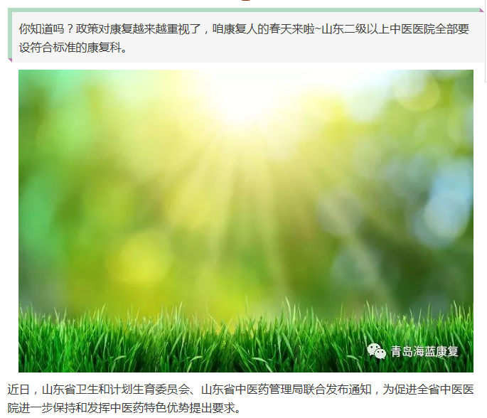 【政策解讀】 山東二級(jí)以上中醫(yī)醫(yī)院全部要設(shè)符合標(biāo)準(zhǔn)的康復(fù)科